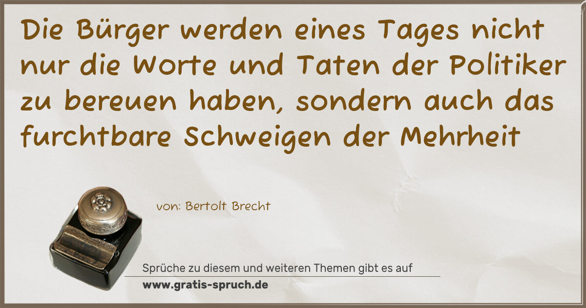 Die Bürger werden eines Tages nicht nur die Worte und Taten der Politiker zu bereuen haben, sondern auch das furchtbare Schweigen der Mehrheit