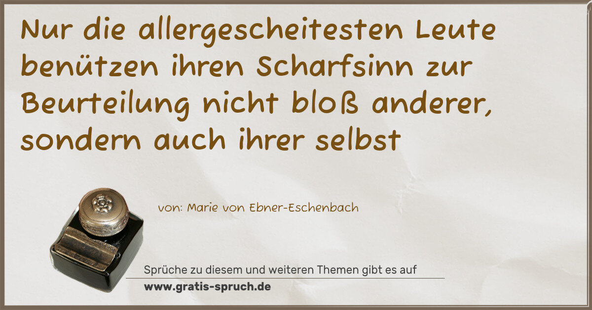 Nur die allergescheitesten Leute benützen ihren Scharfsinn zur Beurteilung nicht bloß anderer, sondern auch ihrer selbst