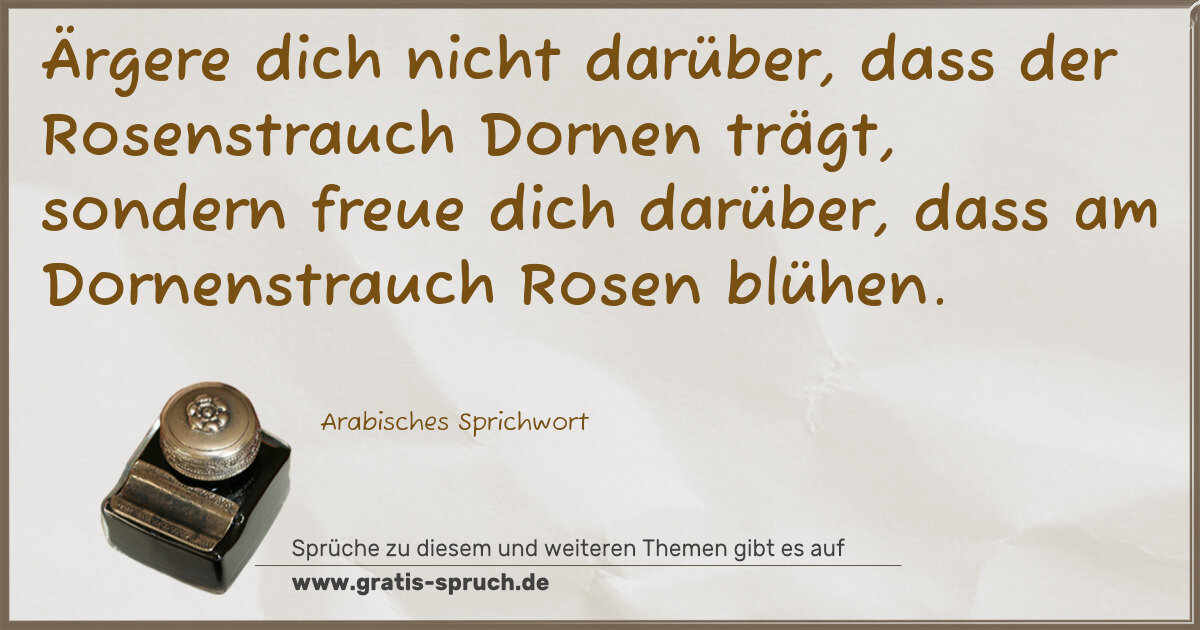Ärgere dich nicht darüber, dass der Rosenstrauch Dornen trägt, sondern freue dich darüber, dass am Dornenstrauch Rosen blühen.