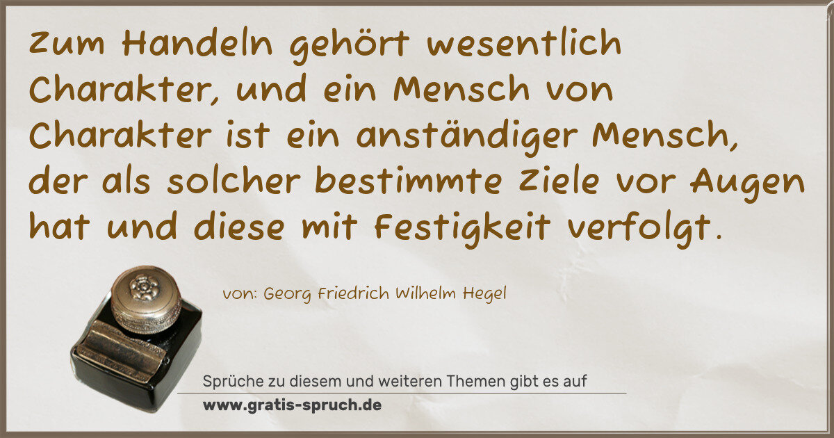 Zum Handeln gehört wesentlich Charakter, und ein Mensch von Charakter ist ein anständiger Mensch, der als solcher bestimmte Ziele vor Augen hat und diese mit Festigkeit verfolgt.