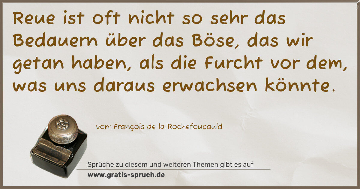 Reue ist oft nicht so sehr das Bedauern über das Böse, das wir getan haben, als die Furcht vor dem, was uns daraus erwachsen könnte.