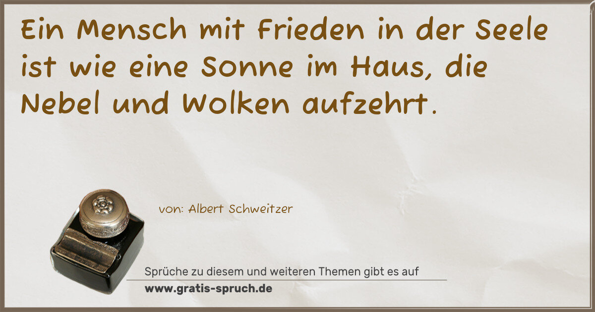 Ein Mensch mit Frieden in der Seele ist wie eine Sonne im Haus, die Nebel und Wolken aufzehrt.