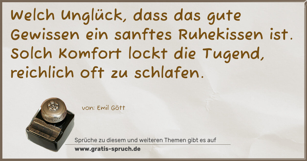 Welch Unglück, dass das gute Gewissen ein sanftes Ruhekissen ist. Solch Komfort lockt die Tugend, reichlich oft zu schlafen.