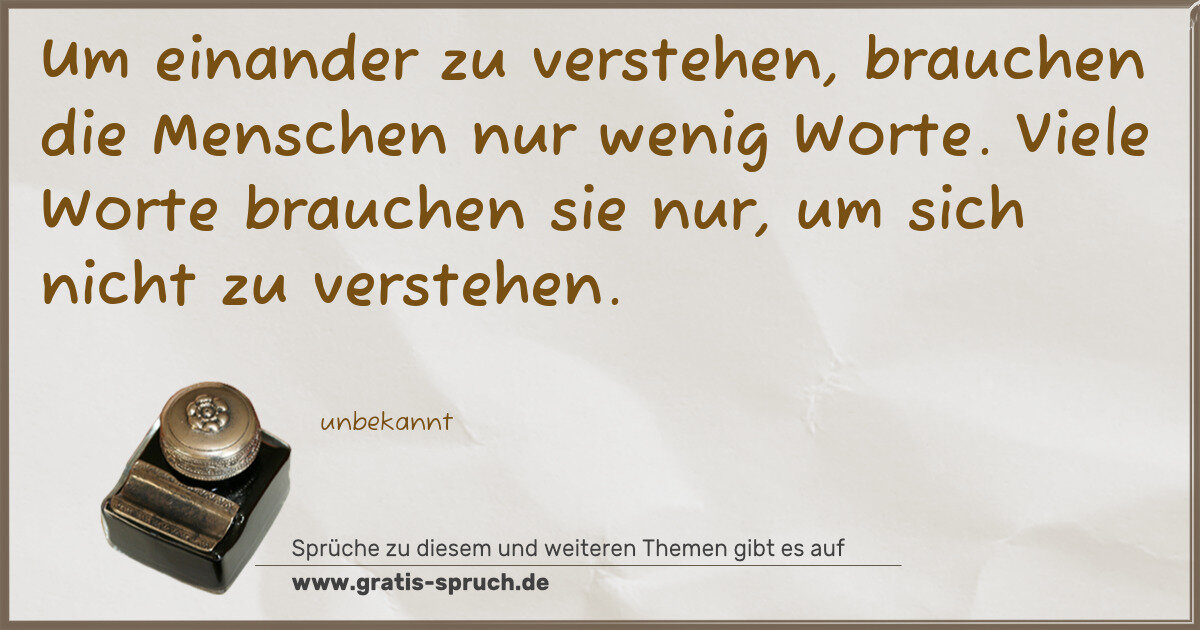 Um einander zu verstehen, brauchen die Menschen nur wenig Worte. Viele Worte brauchen sie nur, um sich nicht zu verstehen.