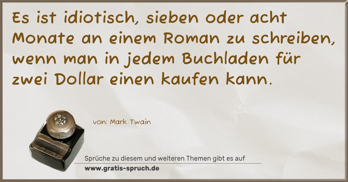 Es ist idiotisch, sieben oder acht Monate an einem Roman zu schreiben, wenn man in jedem Buchladen für zwei Dollar einen kaufen kann.