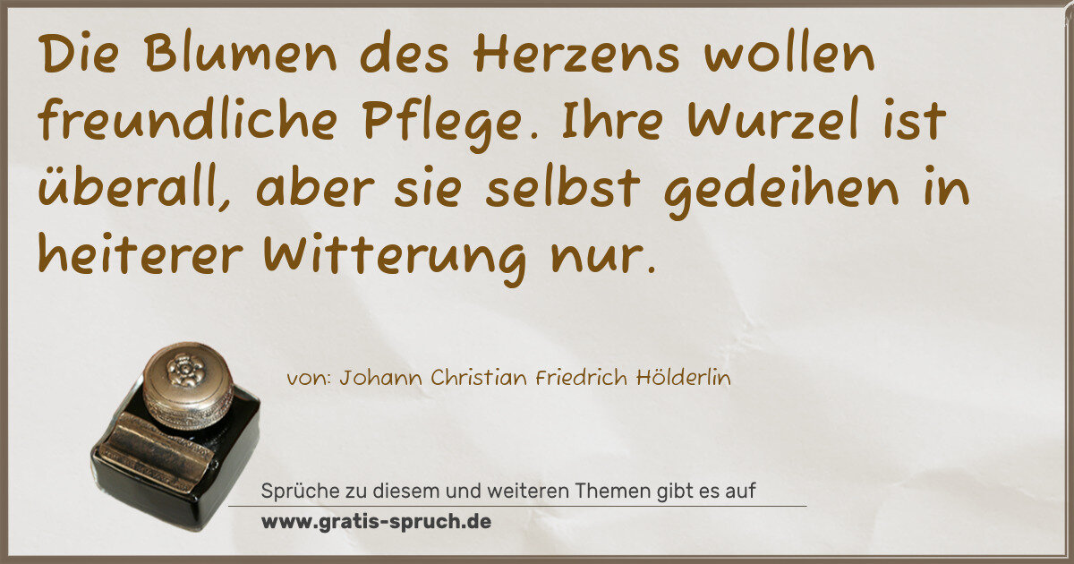 Die Blumen des Herzens wollen freundliche Pflege. Ihre Wurzel ist überall, aber sie selbst gedeihen in heiterer Witterung nur.