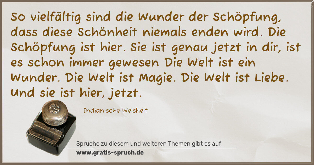 So vielfältig sind die Wunder der Schöpfung, dass diese Schönheit niemals enden wird. Die Schöpfung ist hier. Sie ist genau jetzt in dir, ist es schon immer gewesen Die Welt ist ein Wunder. Die Welt ist Magie. Die …