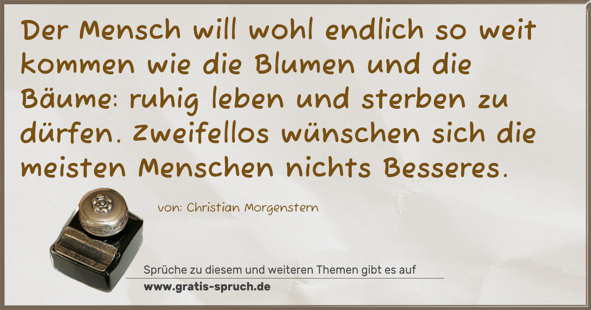 Der Mensch will wohl endlich so weit kommen wie die Blumen und die Bäume: ruhig leben und sterben zu dürfen. Zweifellos wünschen sich die meisten Menschen nichts Besseres.