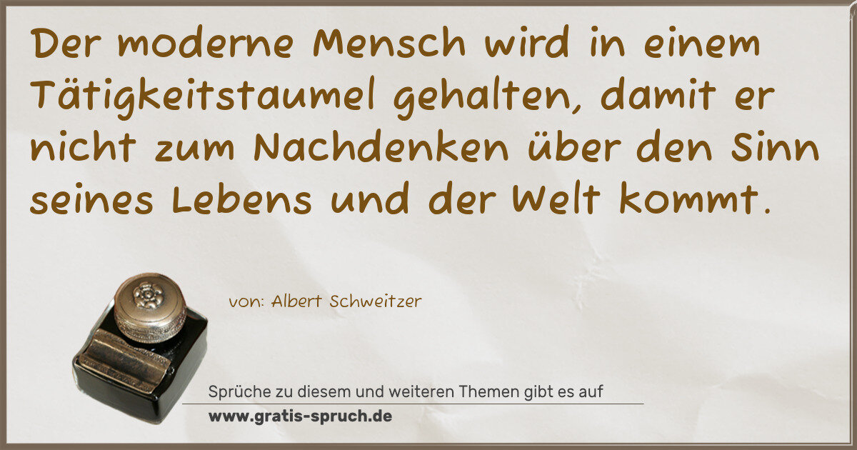 Der moderne Mensch wird in einem Tätigkeitstaumel gehalten, damit er nicht zum Nachdenken über den Sinn seines Lebens und der Welt kommt.