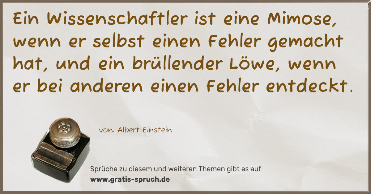 Ein Wissenschaftler ist eine Mimose, wenn er selbst einen Fehler gemacht hat, und ein brüllender Löwe, wenn er bei anderen einen Fehler entdeckt.