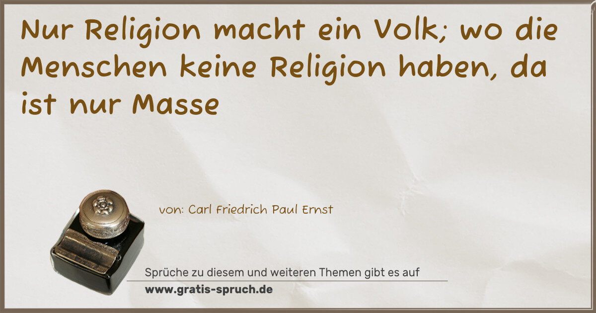 Nur Religion macht ein Volk; wo die Menschen keine Religion haben, da ist nur Masse