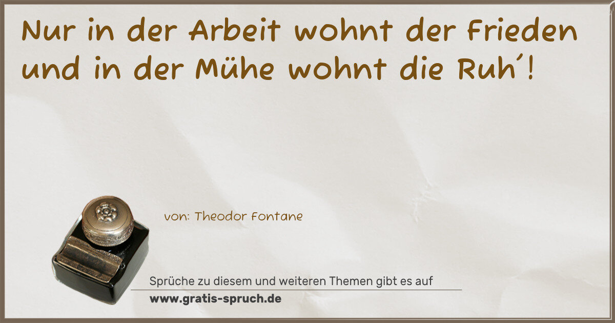 Nur in der Arbeit wohnt der Frieden und in der Mühe wohnt die Ruh'!