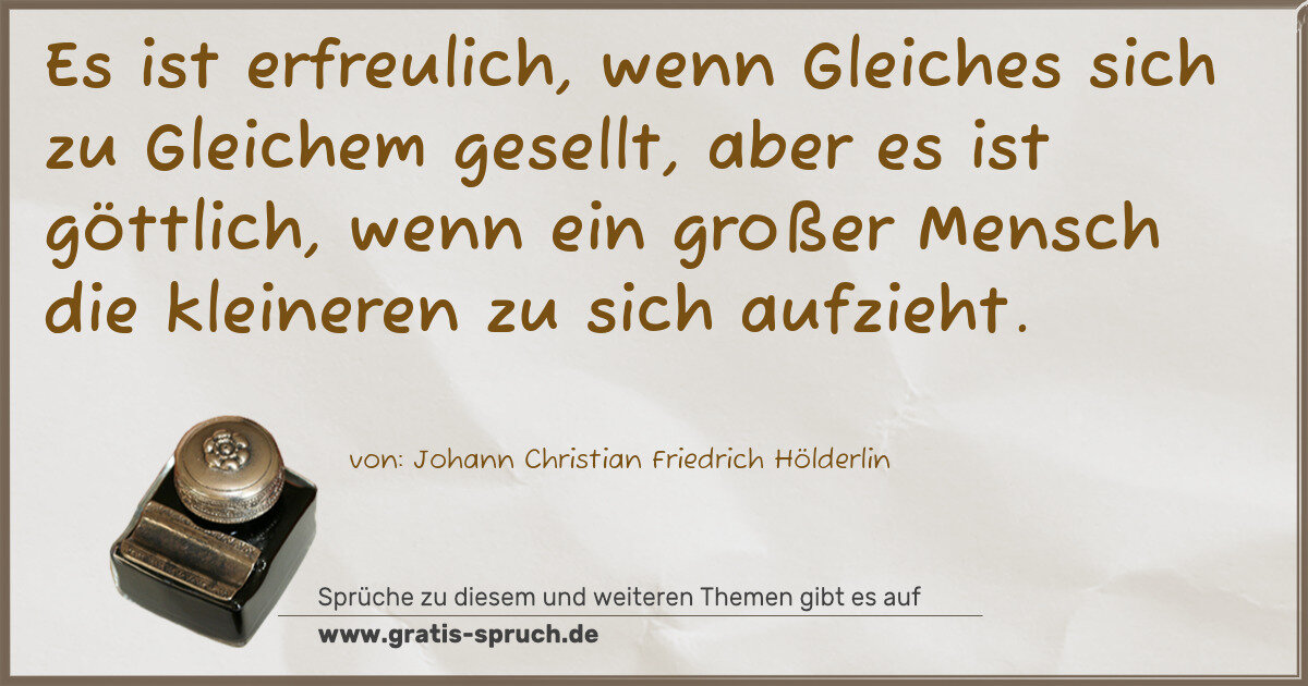 Es ist erfreulich, wenn Gleiches sich zu Gleichem gesellt, aber es ist göttlich, wenn ein großer Mensch die kleineren zu sich aufzieht.