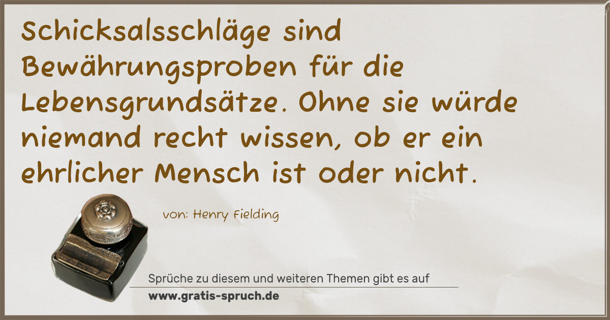 Schicksalsschläge sind Bewährungsproben für die Lebensgrundsätze. Ohne sie würde niemand recht wissen, ob er ein ehrlicher Mensch ist oder nicht.