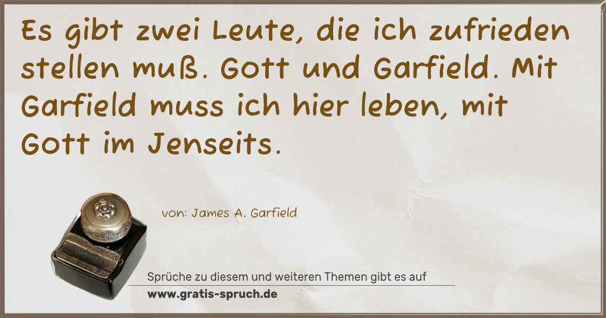 Es gibt zwei Leute, die ich zufrieden stellen muß. Gott und Garfield. Mit Garfield muss ich hier leben, mit Gott im Jenseits.