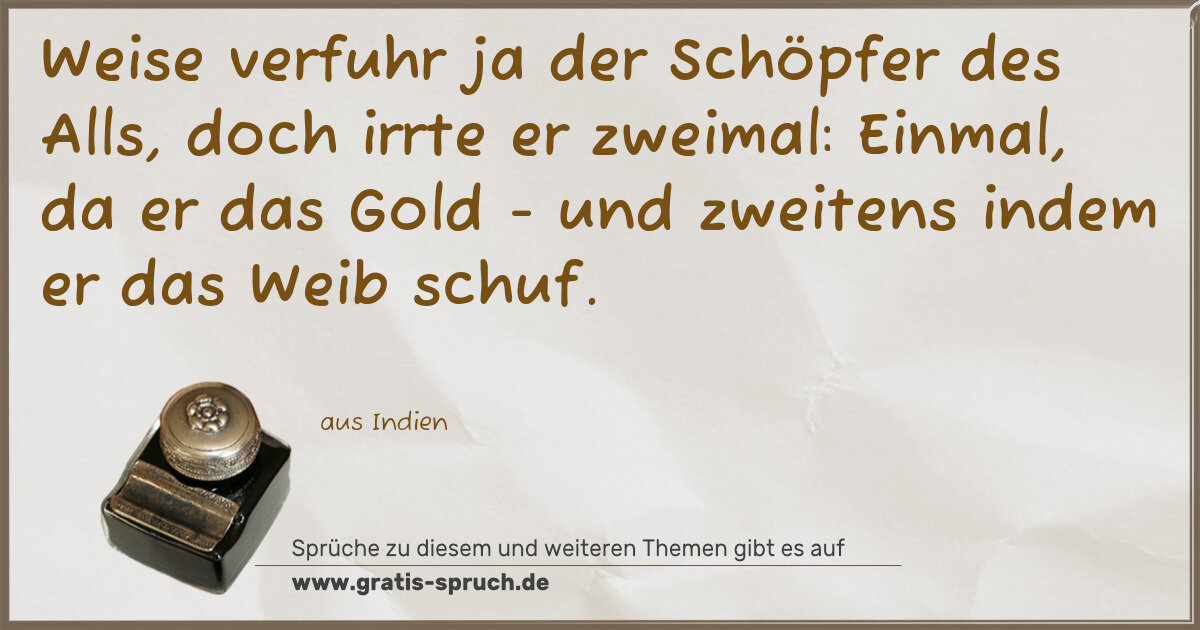 Weise verfuhr ja der Schöpfer des Alls, doch irrte er zweimal: Einmal, da er das Gold - und zweitens indem er das Weib schuf.