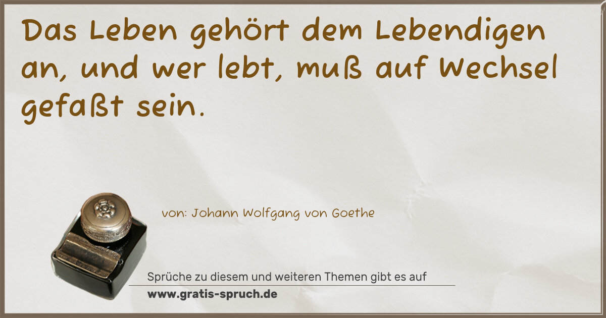 Das Leben gehört dem Lebendigen an, und wer lebt, muß auf Wechsel gefaßt sein.