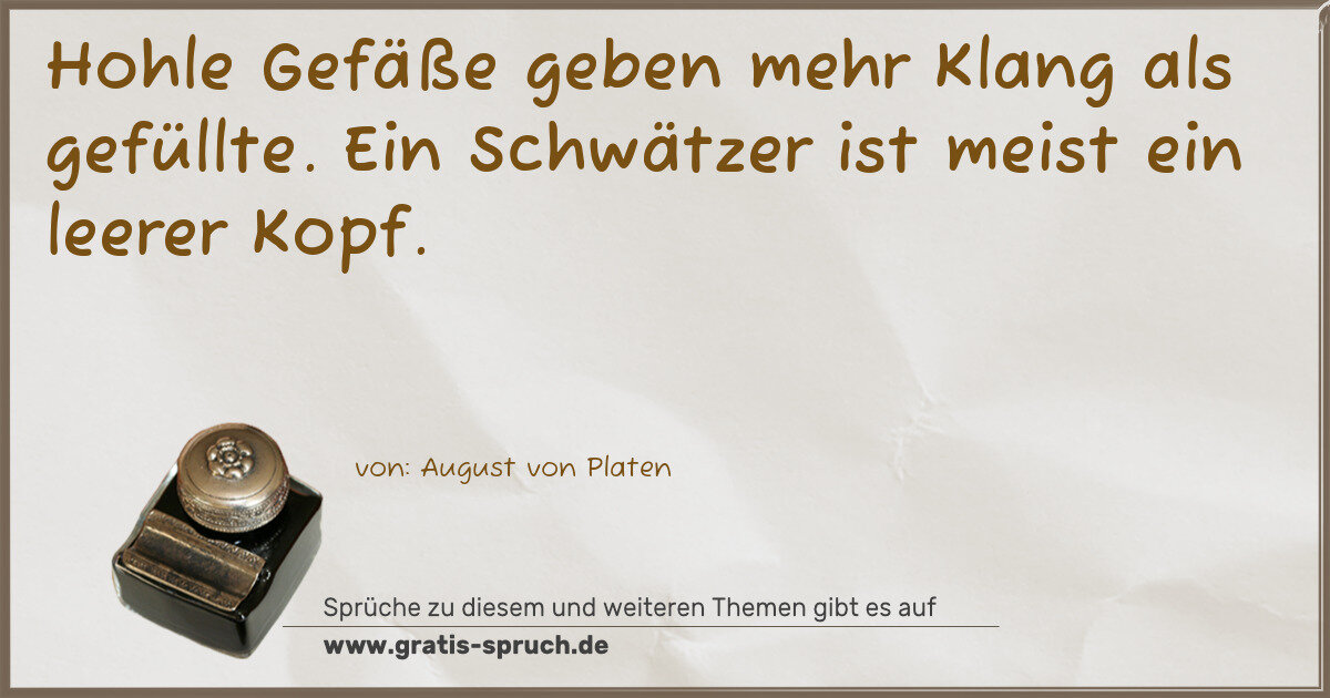 Hohle Gefäße geben mehr Klang als gefüllte. Ein Schwätzer ist meist ein leerer Kopf.