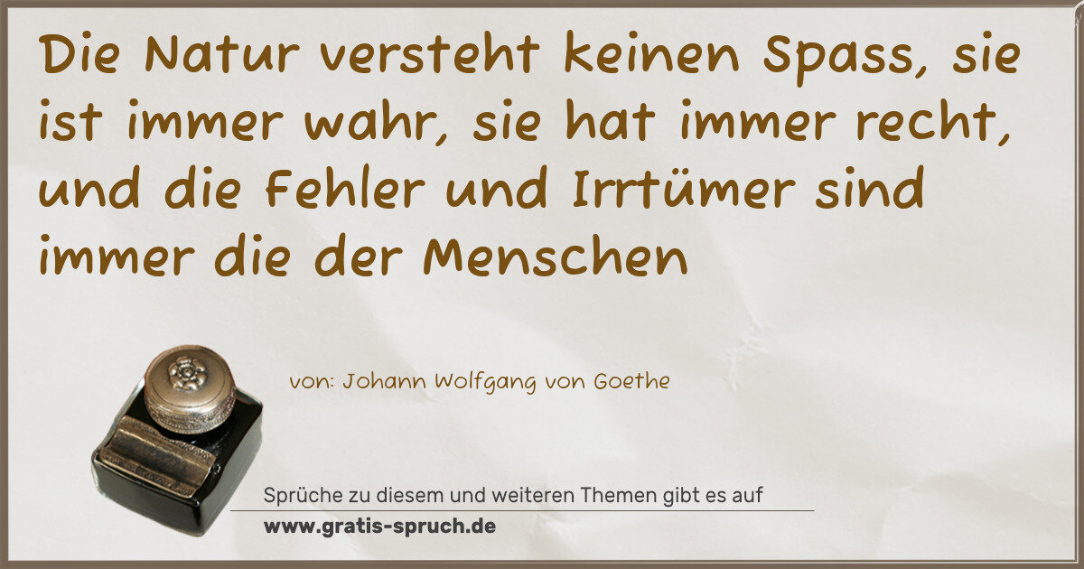 Die Natur versteht keinen Spass, sie ist immer wahr, sie hat immer recht, und die Fehler und Irrtümer sind immer die der Menschen