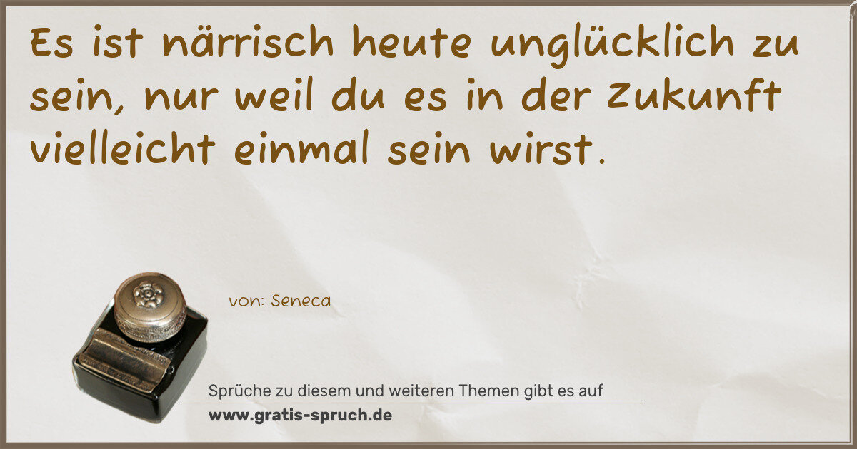 Es ist närrisch heute unglücklich zu sein, nur weil du es in der Zukunft vielleicht einmal sein wirst.