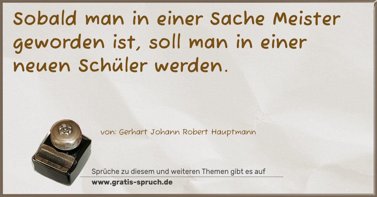 Sobald man in einer Sache Meister geworden ist, soll man in einer neuen Schüler werden.