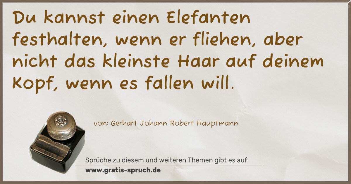Du kannst einen Elefanten festhalten, wenn er fliehen, aber nicht das kleinste Haar auf deinem Kopf, wenn es fallen will.