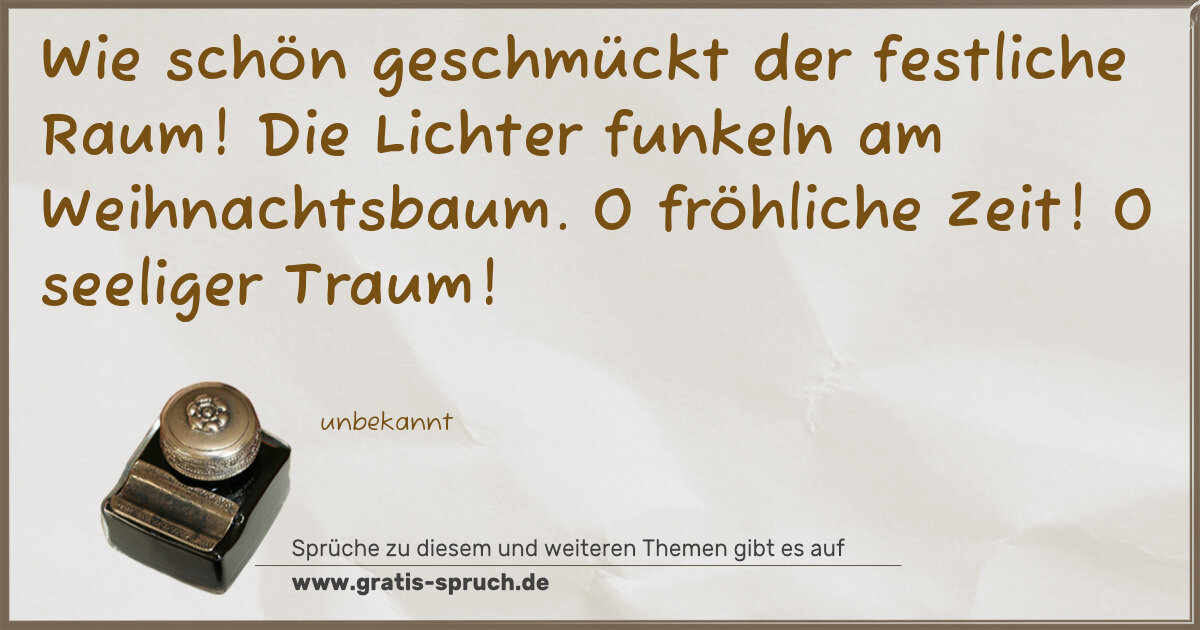 Wie schön geschmückt der festliche Raum! Die Lichter funkeln am Weihnachtsbaum. O fröhliche Zeit! O seeliger Traum!
