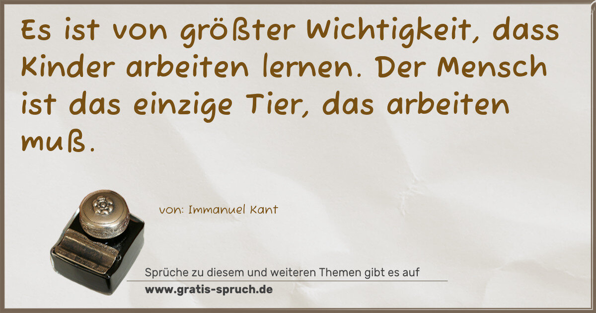 Es ist von größter Wichtigkeit, dass Kinder arbeiten lernen. Der Mensch ist das einzige Tier, das arbeiten muß.