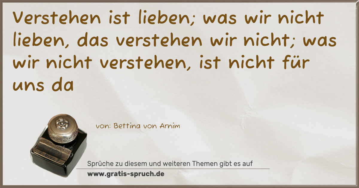 Verstehen ist lieben; was wir nicht lieben, das verstehen wir nicht; was wir nicht verstehen, ist nicht für uns da