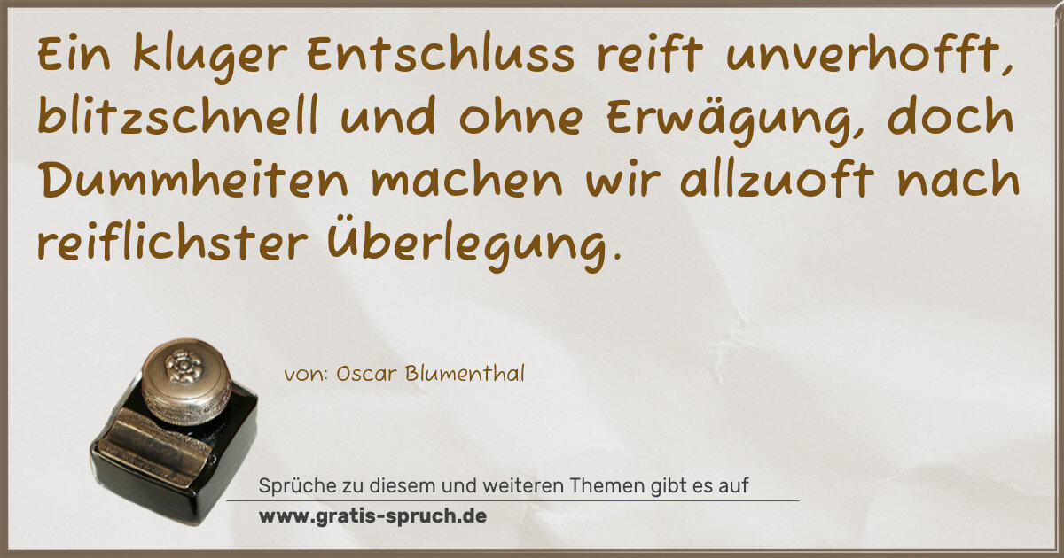 Ein kluger Entschluss reift unverhofft, blitzschnell und ohne Erwägung, doch Dummheiten machen wir allzuoft nach reiflichster Überlegung.
