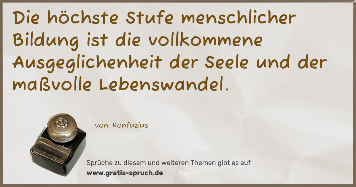 Die höchste Stufe menschlicher Bildung ist die vollkommene Ausgeglichenheit der Seele und der maßvolle Lebenswandel.