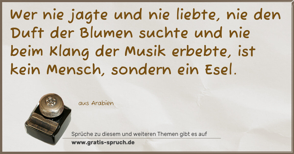 Wer nie jagte und nie liebte, nie den Duft der Blumen suchte und nie beim Klang der Musik erbebte, ist kein Mensch, sondern ein Esel.