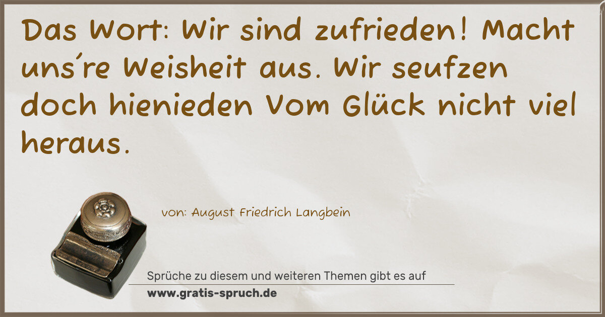 Das Wort: Wir sind zufrieden! Macht uns're Weisheit aus. Wir seufzen doch hienieden Vom Glück nicht viel heraus.
