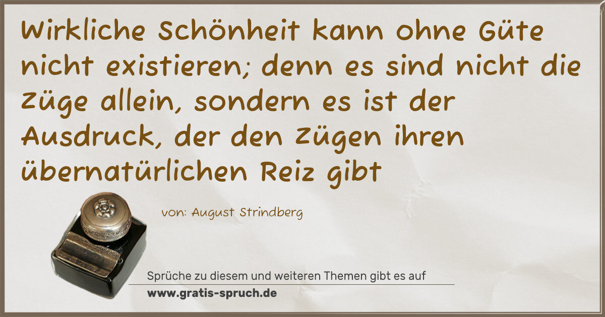 Wirkliche Schönheit kann ohne Güte nicht existieren; denn es sind nicht die Züge allein, sondern es ist der Ausdruck, der den Zügen ihren übernatürlichen Reiz gibt