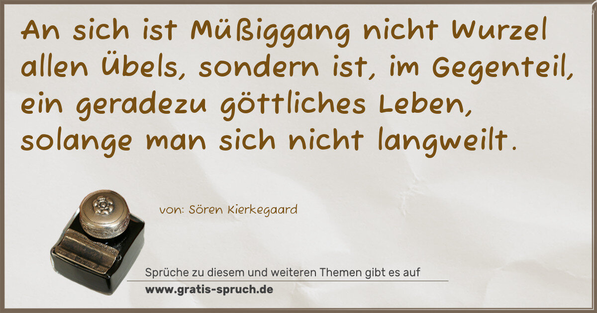 An sich ist Müßiggang nicht Wurzel allen Übels, sondern ist, im Gegenteil, ein geradezu göttliches Leben, solange man sich nicht langweilt.