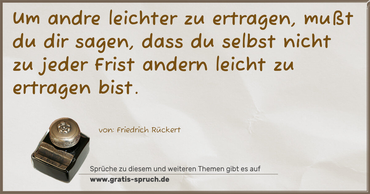 Um andre leichter zu ertragen, mußt du dir sagen, dass du selbst nicht zu jeder Frist andern leicht zu ertragen bist.