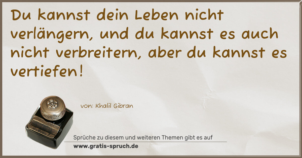 Du kannst dein Leben nicht verlängern, und du kannst es auch nicht verbreitern, aber du kannst es vertiefen!