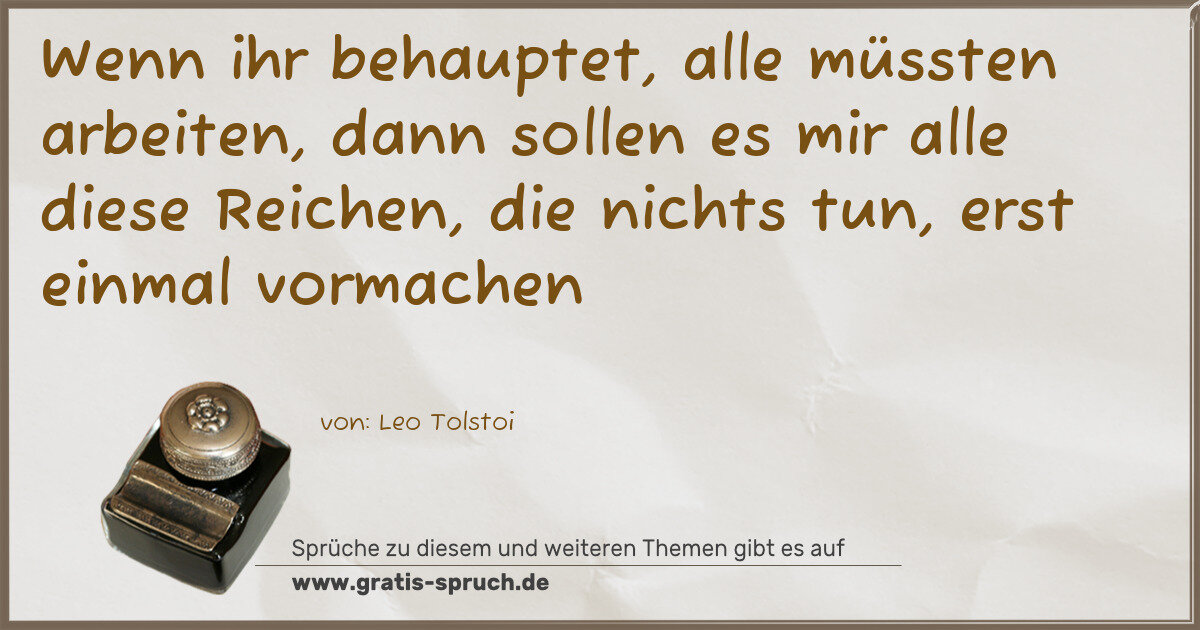 Wenn ihr behauptet, alle müssten arbeiten, dann sollen es mir alle diese Reichen, die nichts tun, erst einmal vormachen