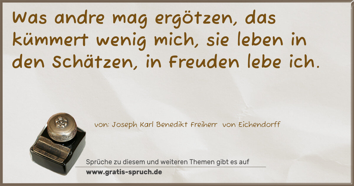 Was andre mag ergötzen, das kümmert wenig mich, sie leben in den Schätzen, in Freuden lebe ich.