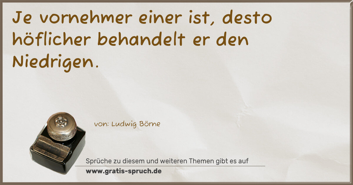 Je vornehmer einer ist, desto höflicher behandelt er den Niedrigen.