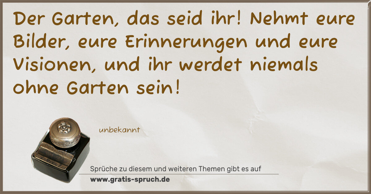 Der Garten, das seid ihr! Nehmt eure Bilder, eure Erinnerungen und eure Visionen, und ihr werdet niemals ohne Garten sein!