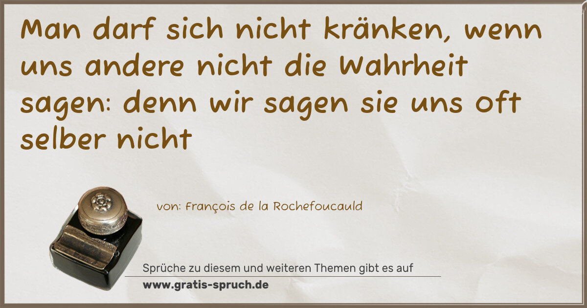 Man darf sich nicht kränken, wenn uns andere nicht die Wahrheit sagen: denn wir sagen sie uns oft selber nicht
