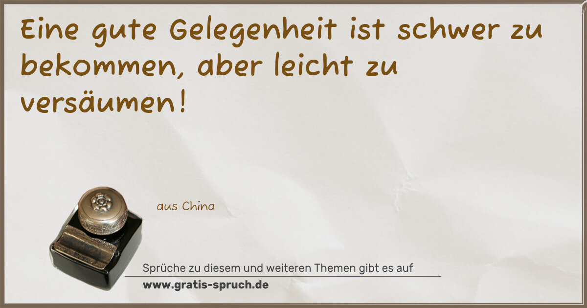 Eine gute Gelegenheit ist schwer zu bekommen, aber leicht zu versäumen!