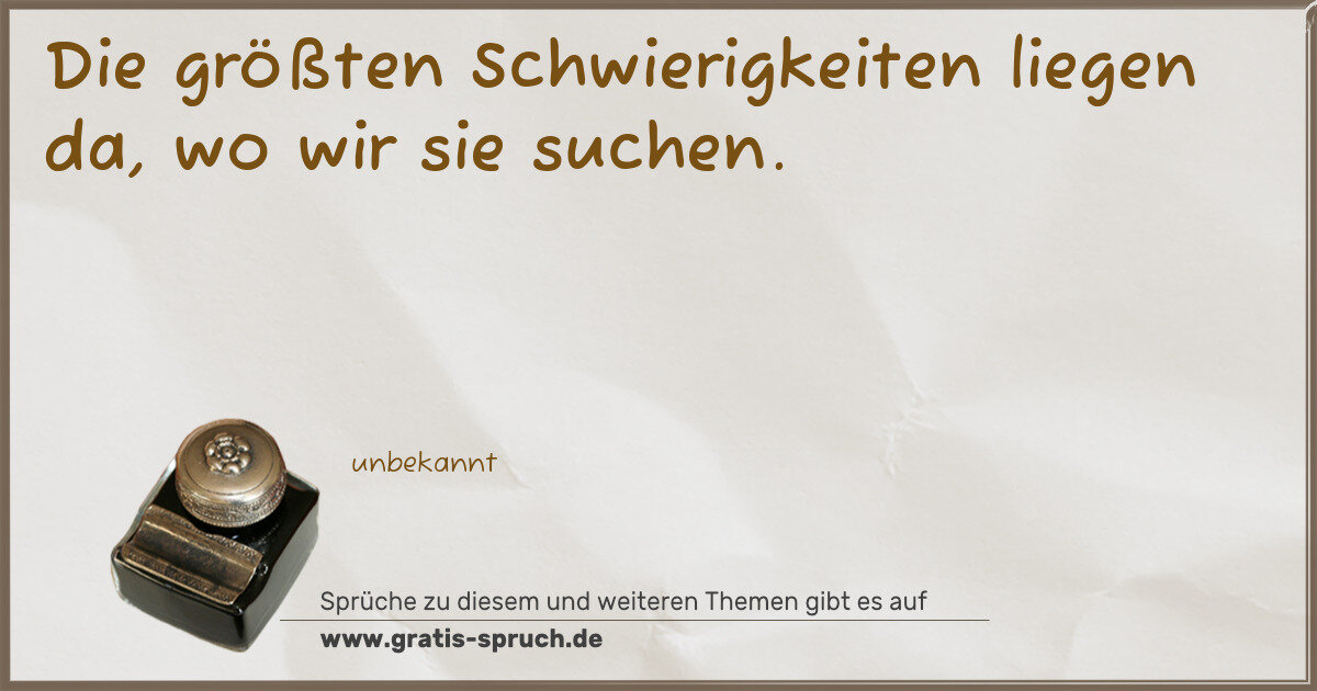 Die größten Schwierigkeiten liegen da, wo wir sie suchen.