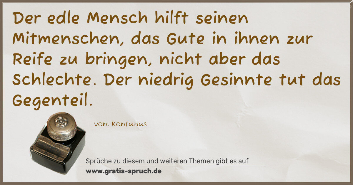 Der edle Mensch hilft seinen Mitmenschen, das Gute in ihnen zur Reife zu bringen, nicht aber das Schlechte. Der niedrig Gesinnte tut das Gegenteil.