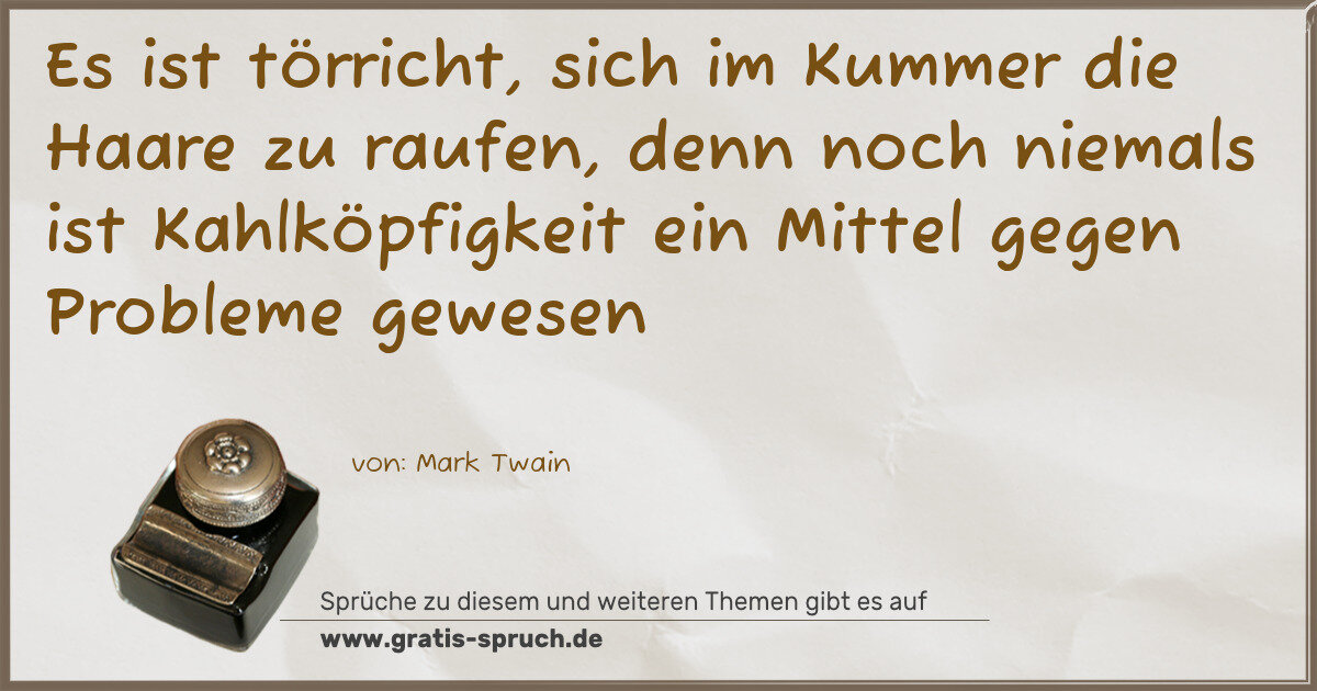 Es ist törricht, sich im Kummer die Haare zu raufen, denn noch niemals ist Kahlköpfigkeit ein Mittel gegen Probleme gewesen