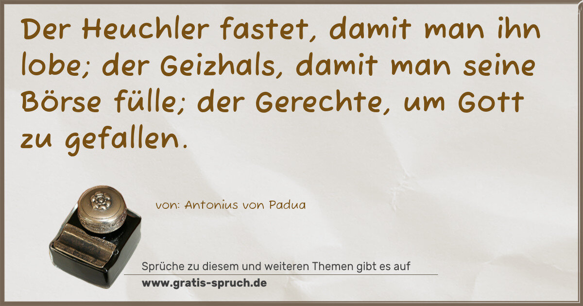Der Heuchler fastet, damit man ihn lobe; der Geizhals, damit man seine Börse fülle; der Gerechte, um Gott zu gefallen.