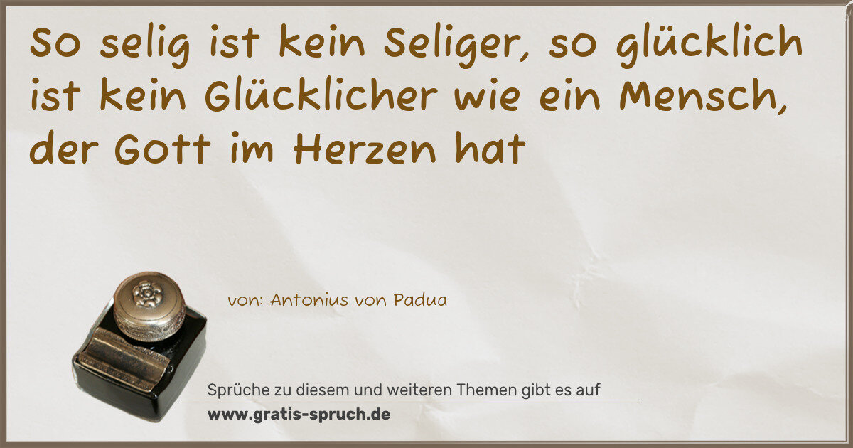 So selig ist kein Seliger, so glücklich ist kein Glücklicher wie ein Mensch, der Gott im Herzen hat