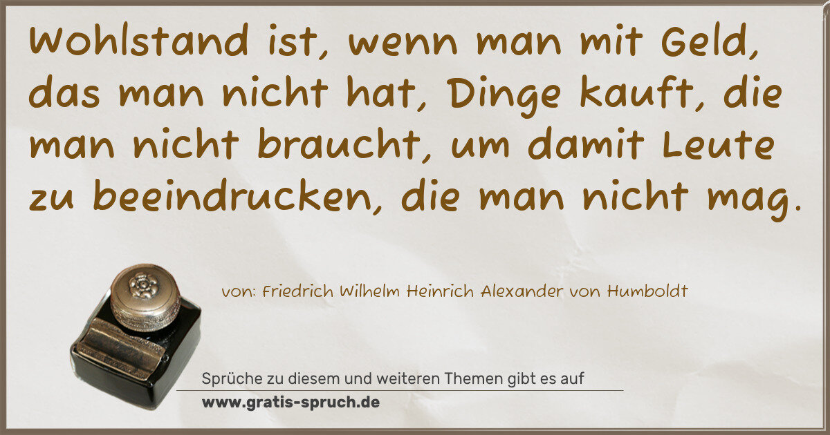 Wohlstand ist, wenn man mit Geld, das man nicht hat, Dinge kauft, die man nicht braucht, um damit Leute zu beeindrucken, die man nicht mag.