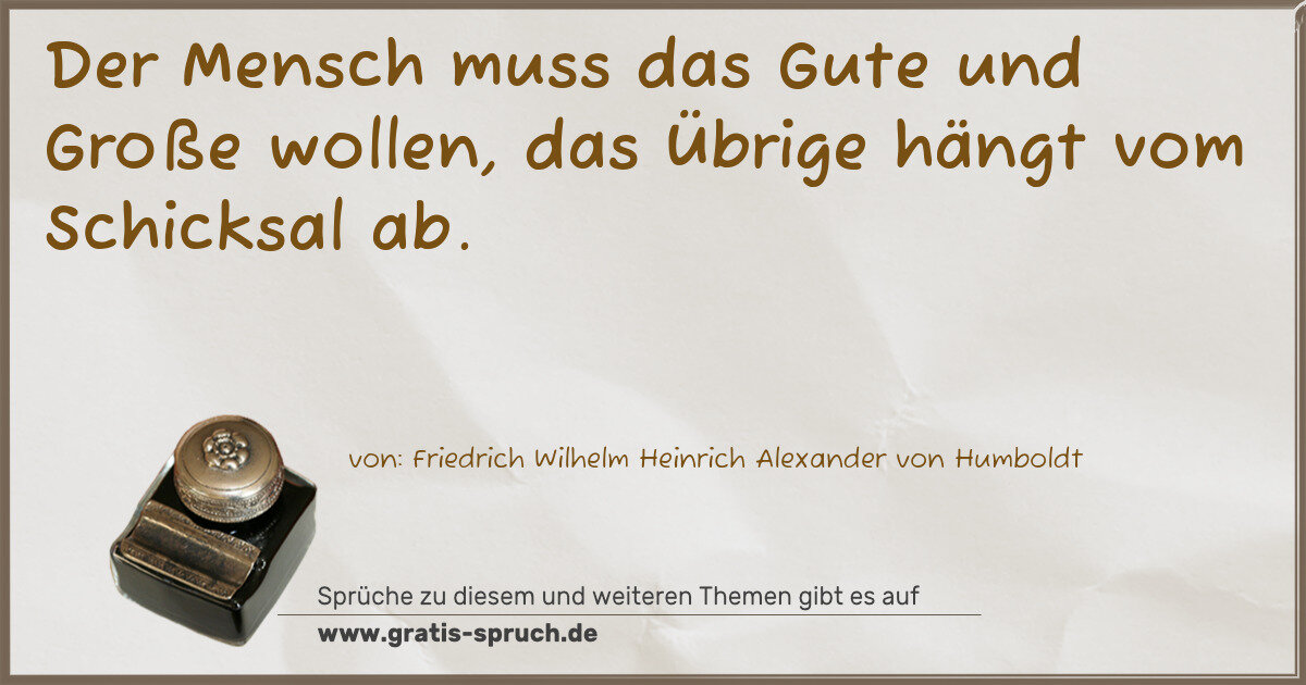 Der Mensch muss das Gute und Große wollen, das Übrige hängt vom Schicksal ab.